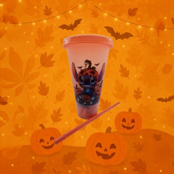 Apportez une touche de magie et de gourmandise à votre fête d’Halloween avec ce superbe gobelet réutilisable aux couleurs de la saison ! Illustré du personnage adoré Stitch, déguisé avec des citrouilles et entouré de chauves-souris, ce gobelet orange translucide séduira aussi bien les enfants que les fans Disney.